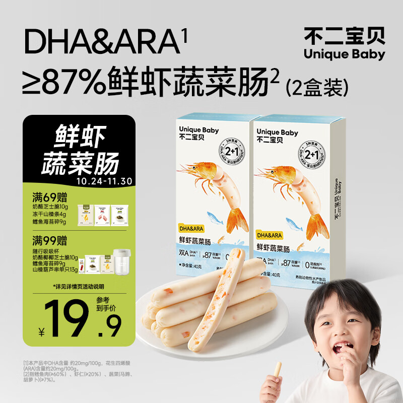 不二宝贝鲜虾鳕鱼肠40g*2盒