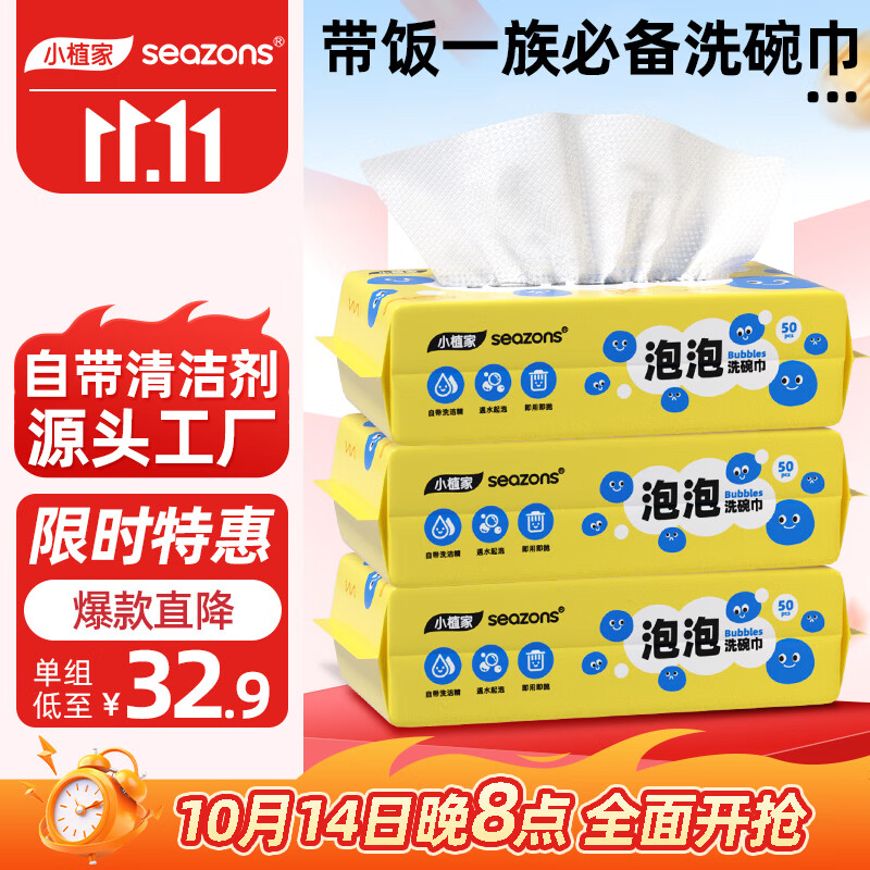 小植家洗碗抹布20*20cm50抽*3包