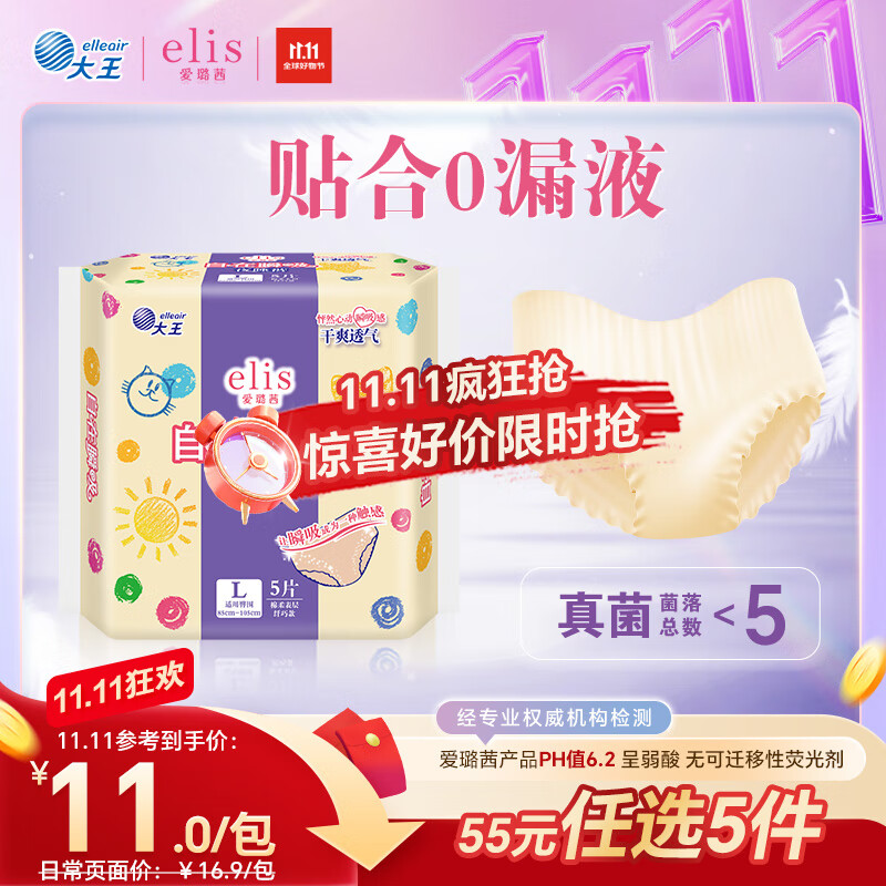爱璐茜(elis)大王自在瞬吸安睡裤L码5条