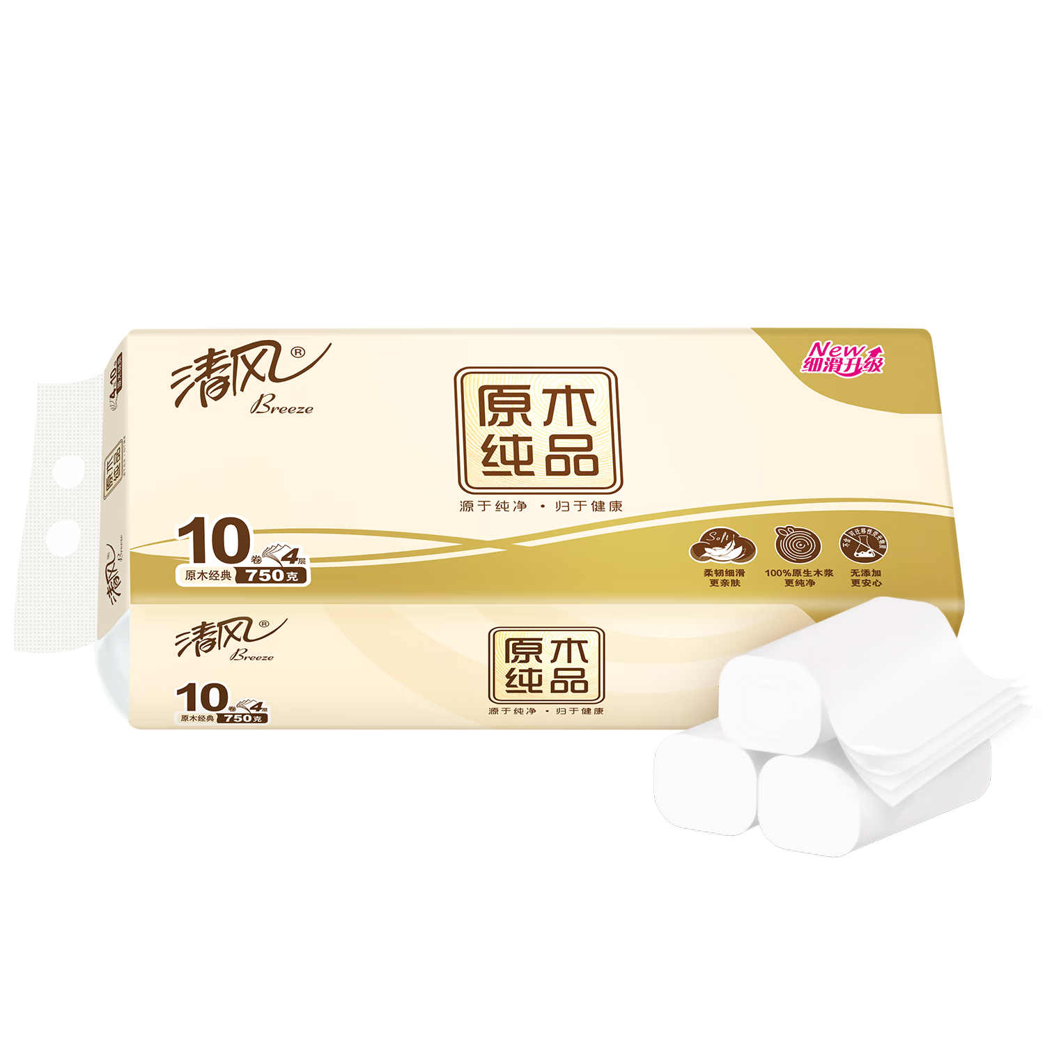 清风 无芯卷纸 原木纯品4层加厚75克*10卷