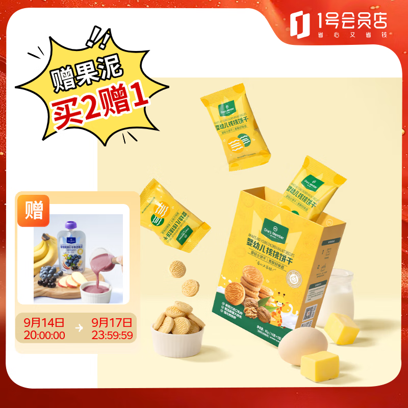 砸10劵 会员拍下0.9 省省卡2劵 1号会员店 婴幼儿核桃饼干 磨牙