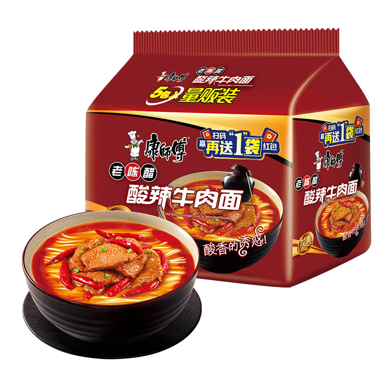 砸5劵 拍下6.9亓 康师傅老陈醋酸辣牛肉面110g 5包