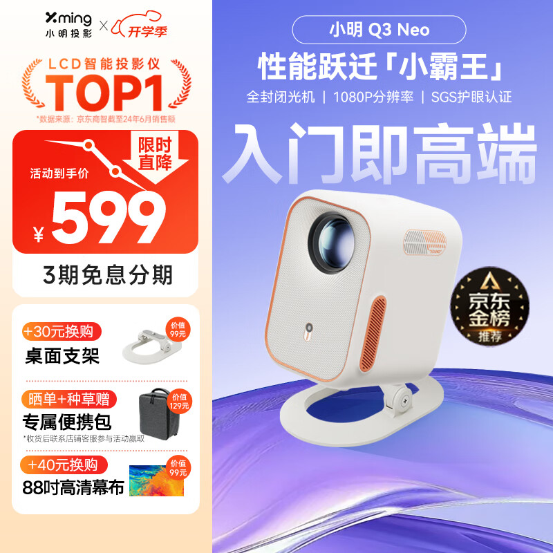小明 Q3 Neo 投影仪 真1080P,国补后339,按需