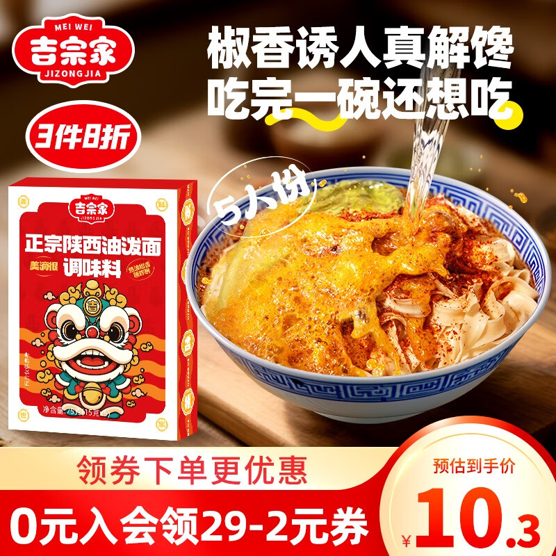 吉宗家正宗陕西油泼面裤带面调料75g5人份
