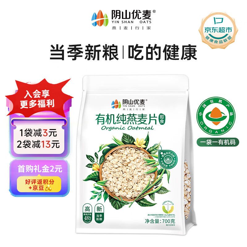 阴山优麦裸燕麦兔煮即食麦片700克,买2件 凑单折后5.53/件