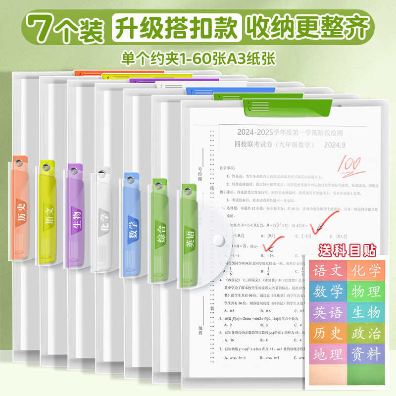 舒星 7个装A3双拉杆试卷夹,9件15.8亓