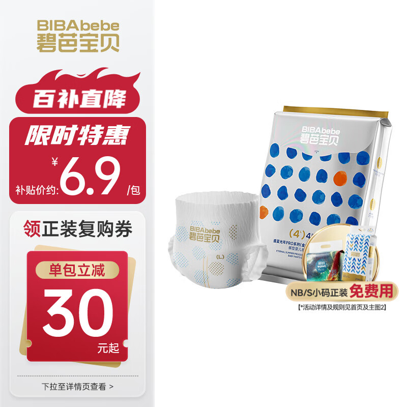 碧芭宝贝盛夏光年PRO金装plus奢宠装拉拉裤L4片,1.45