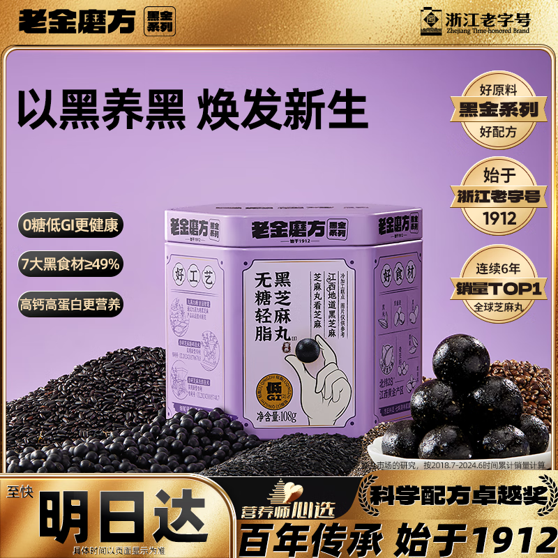 老金磨方无糖低GI黑芝麻丸108g,加购1件并且勾选