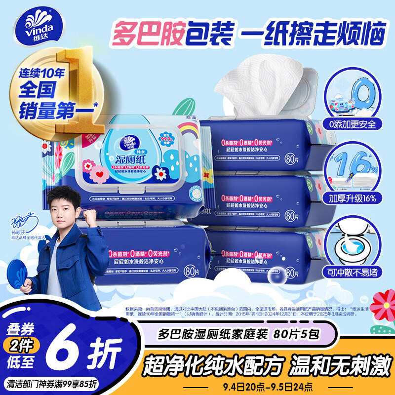 维达(Vinda)湿厕纸 家庭装80片*5包