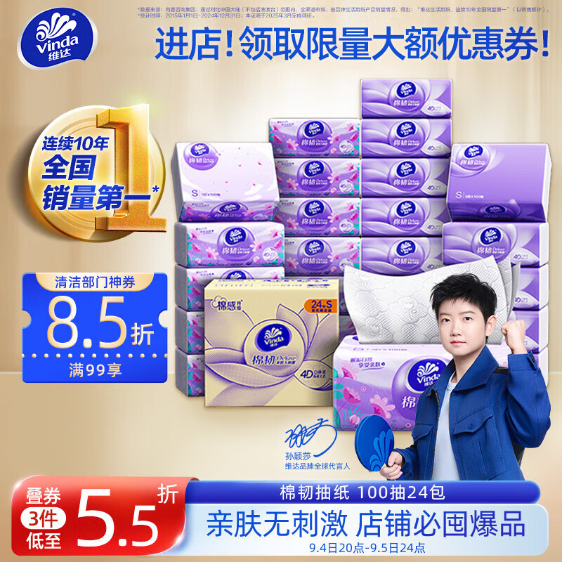 Vinda 维达 棉韧系列 抽纸 3层100抽24包真S码