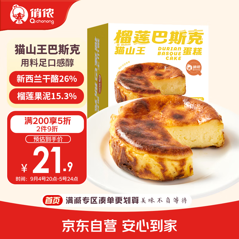 俏侬 猫山王榴莲巴斯克蛋糕80g*3