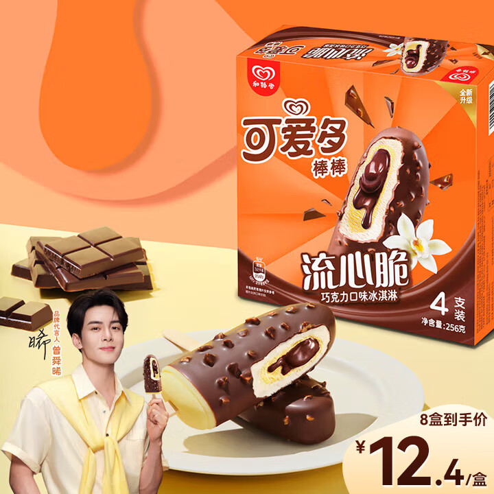 可爱多 棒棒流心脆巧克力口味冰淇淋64g*4攴,买8件51.99