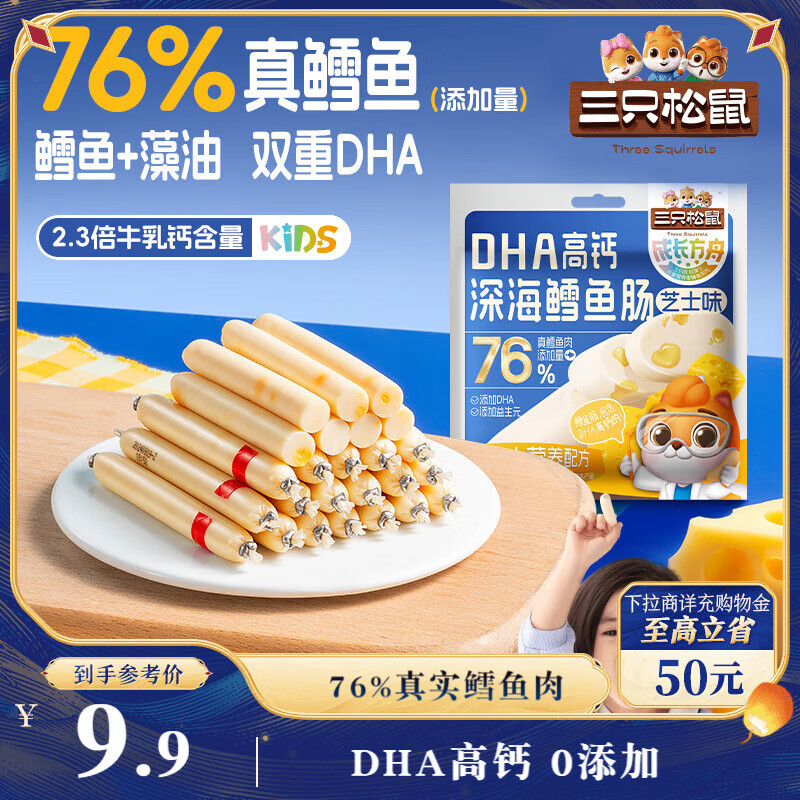 部分地区价 2.9 三只松鼠DHA深海鳕鱼肠100g