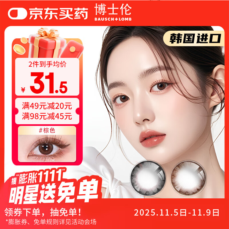 博士伦 超逸睛彩彩色隐形眼镜美瞳日抛5片装,拍3件,每件0.5亓