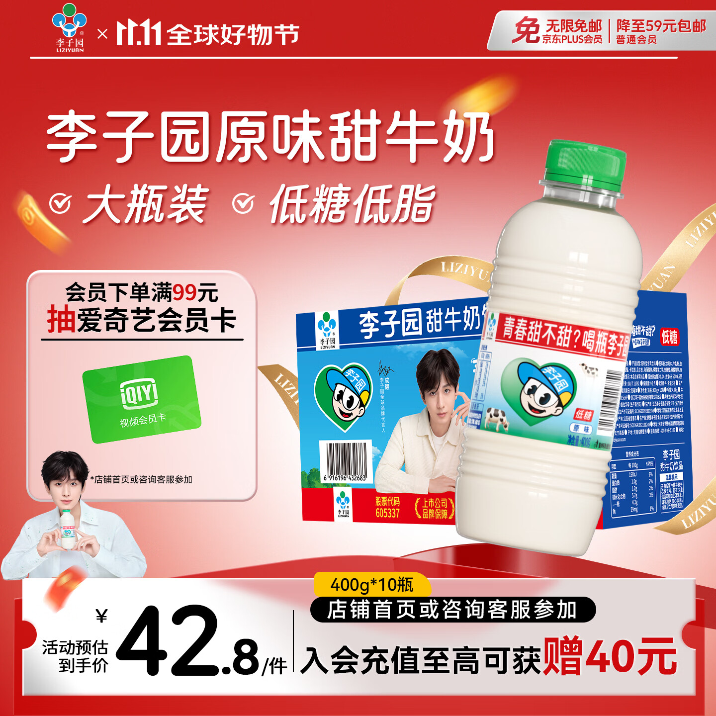 李子园 甜牛奶乳饮料原味400g*10瓶整箱,买2件 凑单折后28.12/件