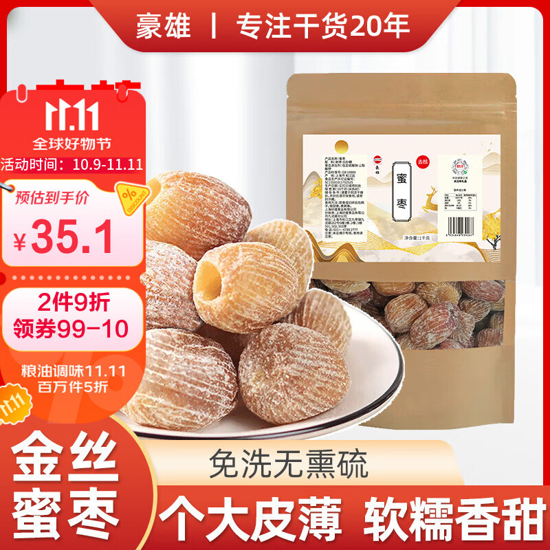 豪雄无核蜜枣1000g,买6件 凑单折后8.1/件