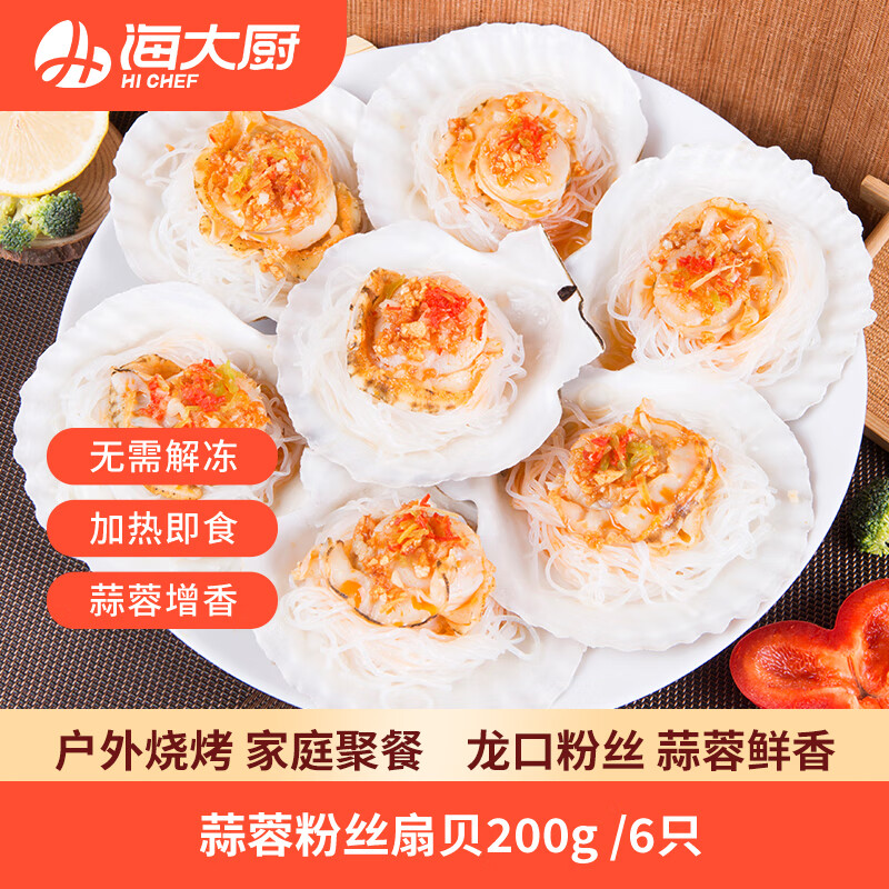 海大厨 冷冻蒜蓉粉丝扇贝 200g 6只