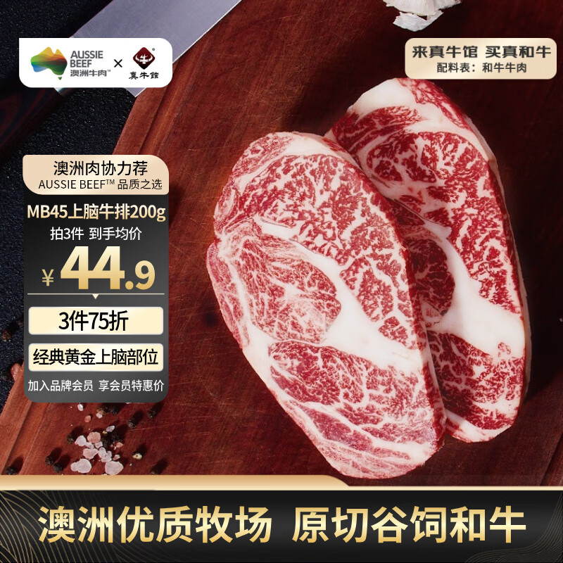 真牛馆澳洲MB45和牛原切上脑心牛排200g