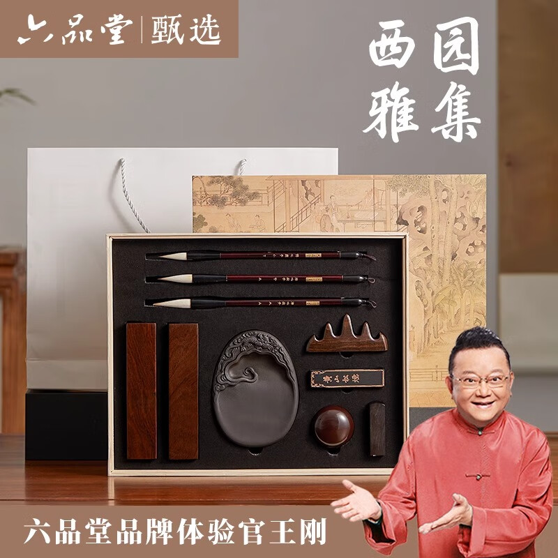 六品堂 文房四宝套装礼盒笔墨纸砚全套砚台镇尺毛笔墨条墨块,弹出92折劵,买1件 凑单折后16.25
