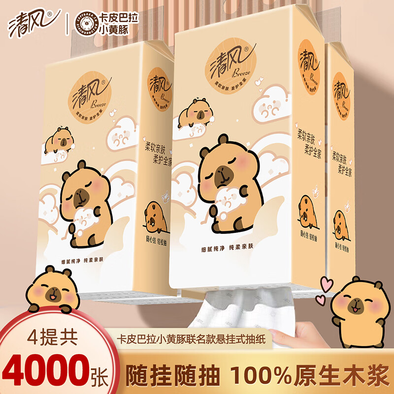 清风卡皮巴拉抽纸250抽4提