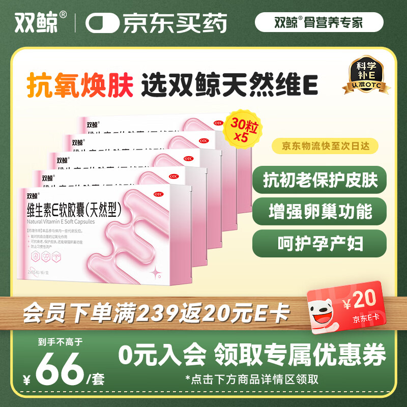 双鲸维生素E软胶囊 100毫克*2*15粒/板/盒*5盒 ,8.9