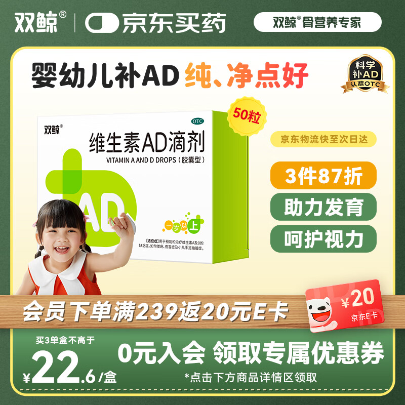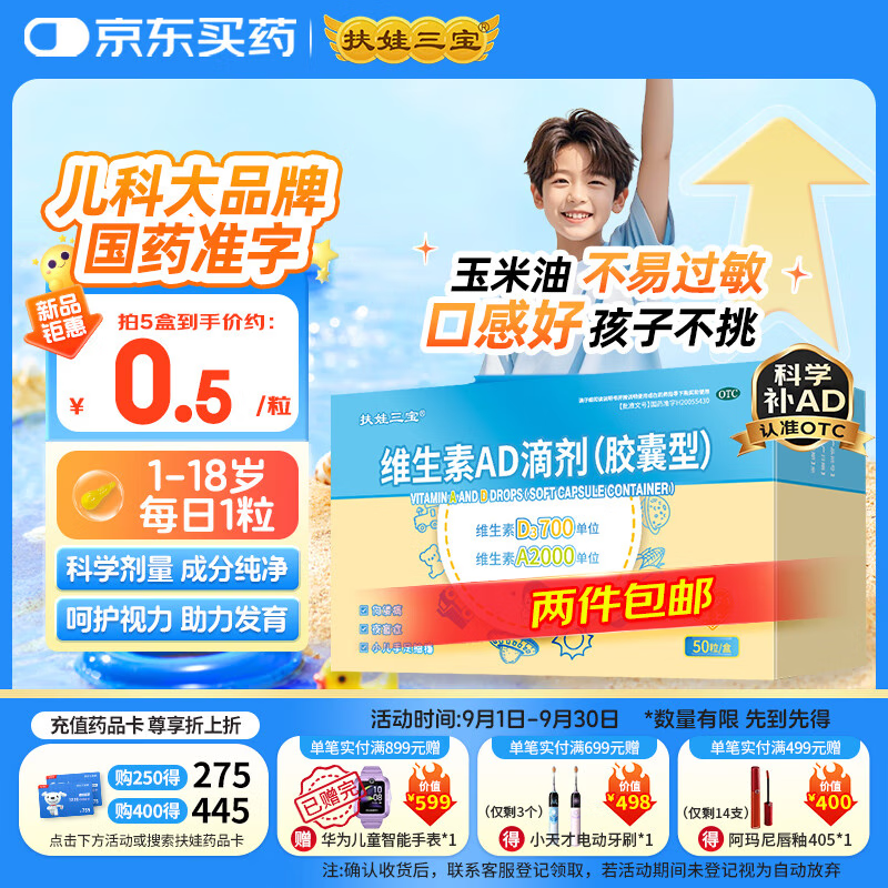 扶娃三宝 维生素AD滴剂(胶囊型)50粒 一岁以上,6.56