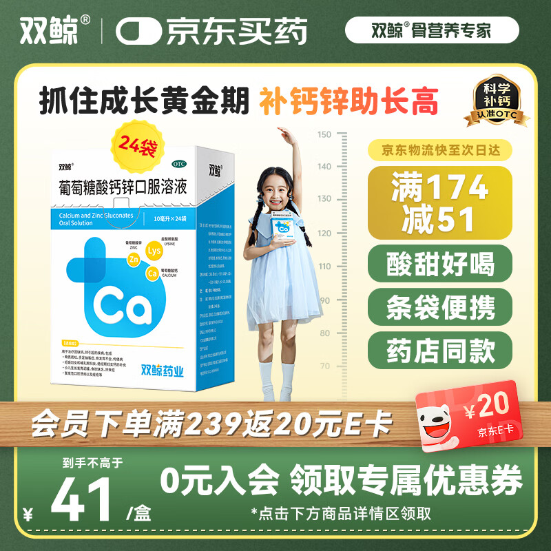 双鲸葡萄糖酸钙锌口服溶液10ml*24袋,11.31