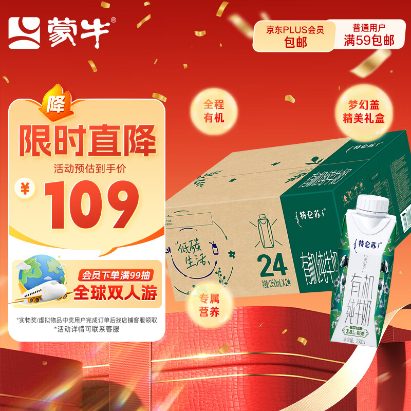 蒙牛特仑苏有机纯牛奶250ml*24盒 礼盒装