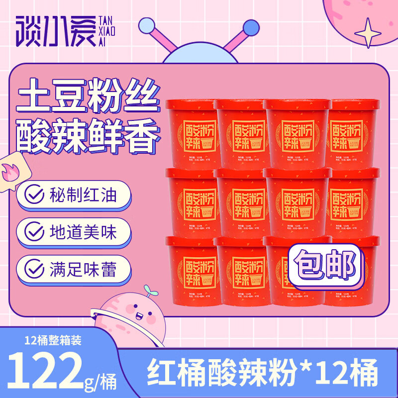 谈小爱(TANXIAOAI)红桶酸辣粉土豆粉丝122g*12桶整箱 非油炸方便面速食粉丝夜宵
