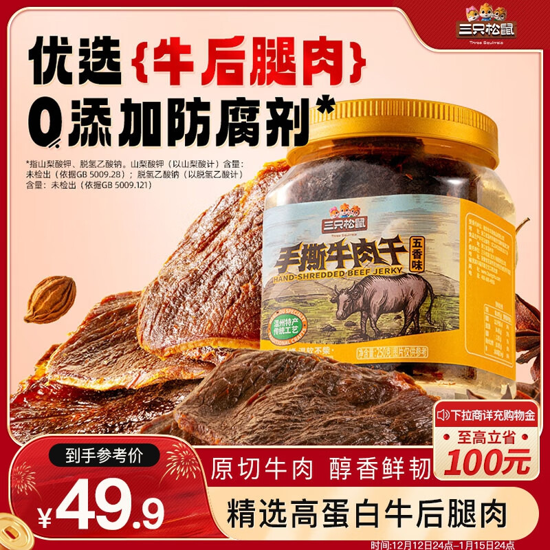 三只松鼠 手撕牛肉片五香味250g罐装,7.9