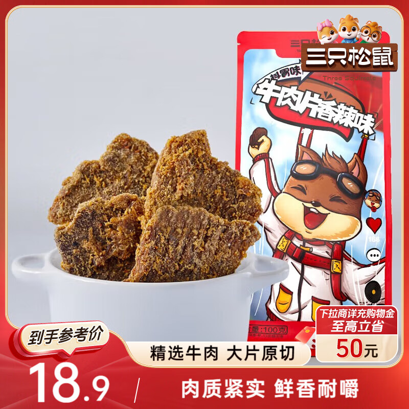 三只松鼠牛肉片香辣味100g袋装,4.9