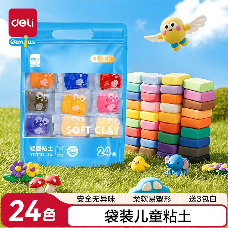 得力 24色袋装粘土彩泥橡皮泥玩具,买29件79.05