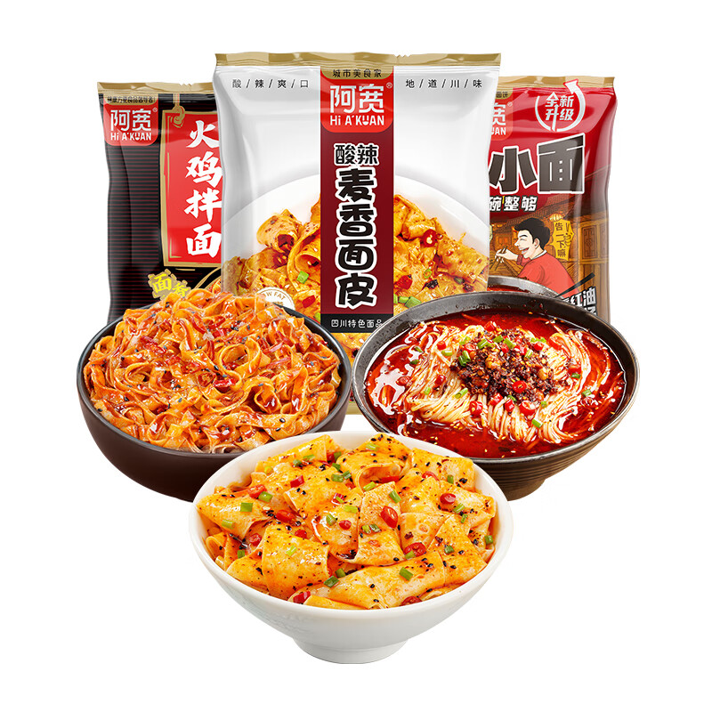 阿宽火鸡面红油面皮酸辣味巷子面重庆小面拌面3袋,部分用戸砸落59-20劵,学生价买6件0.01