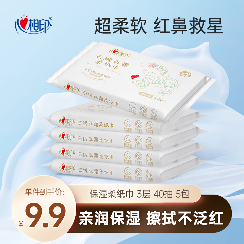 心相印抽纸 柔纸巾3层40抽*5包如霜保湿