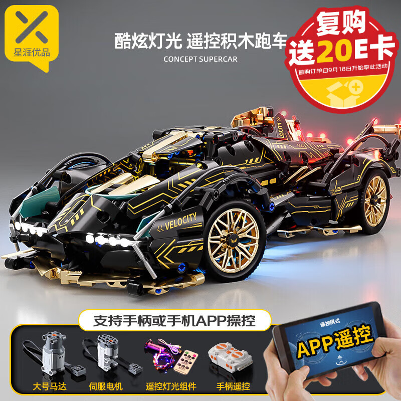 星涯优品 儿童积木玩具兰博基尼遥控汽车拼插装,6.2
